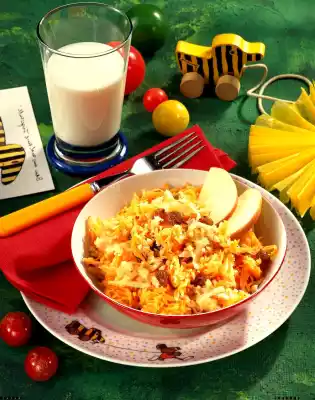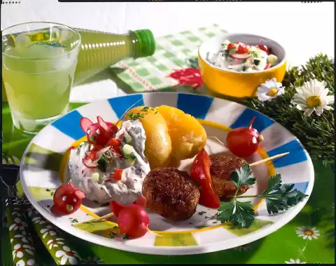 Carrot Meatballs With Pea Vegetables And Mashed Potatoes