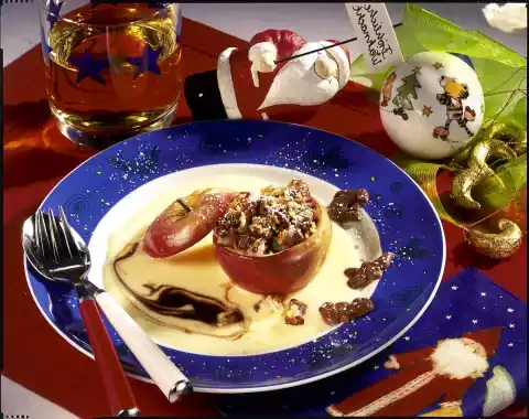Baked Apple With Nut Bounty Filling And Vanillin Sauce