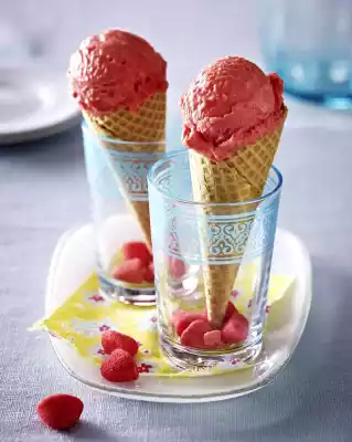 Strawberry Ice Cream In A Wafer With Foamed Sugar Strawberries