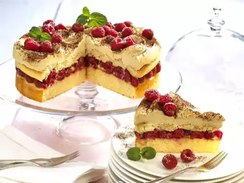 Chocolate Cake With Roasted Hazelnuts And Raspberries