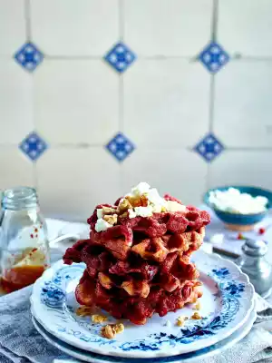Beetroot Waffles With Feta