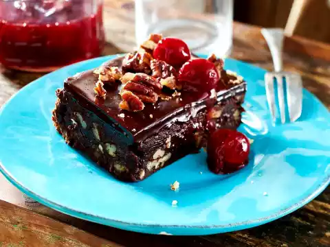 Brownie With Pecan Nuts And Cherries