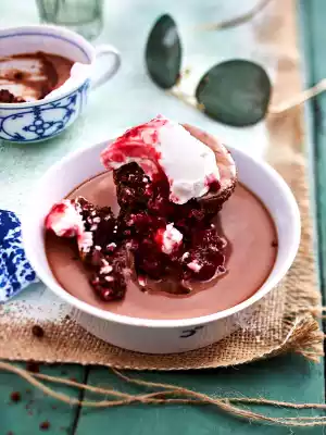 Nougat Panna Cotta With Raspberry Chocolate Cake