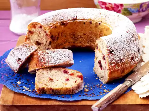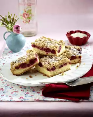 Cherry Crumble Cake With Vanilla And Sour Cream Glaze