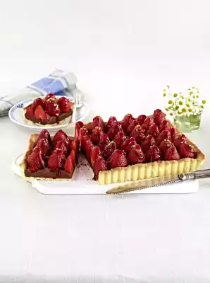 Sunken Strawberry-rhubarb Cake With Sugar Icing