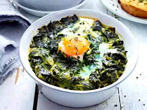 Fried Fried Eggs On Spinach