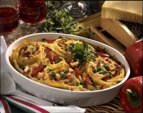 Broccoli And Tortellini Casserole With Cooked Ham And Pecan Nuts