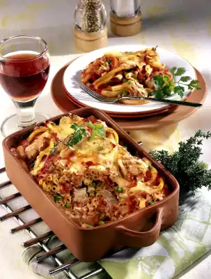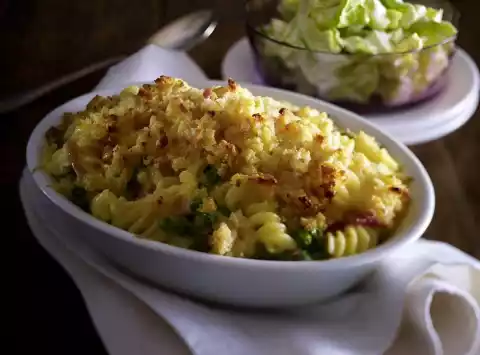Pasta Casserole With Ham, Peas And Cheese Sauce