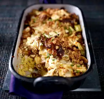 Cauliflower Mince Casserole With Celery In Cress Béchamel Sauce