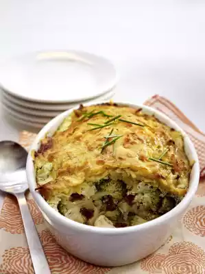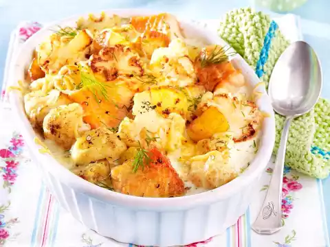 Baked Apple Casserole With Quark And Semolina Topping And Crispy Crumble
