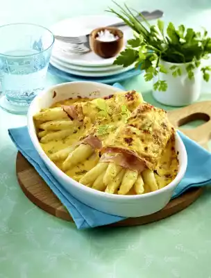 Asparagus Crespelle Au Gratin With Cheese-herb-hollandaise Sauce