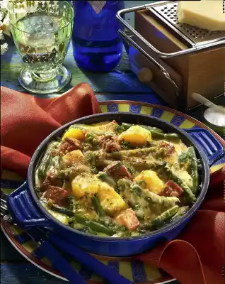 Béchamel Potatoes With Sausage And Vegetables
