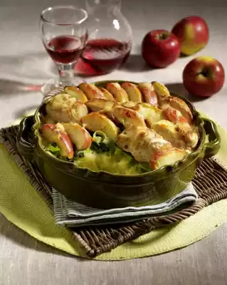 Potato Casserole With Apples, Chicken Fillet And Thyme Béchamel