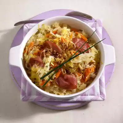 Sauerkraut Au Gratin With Carrots And Salmon Ham