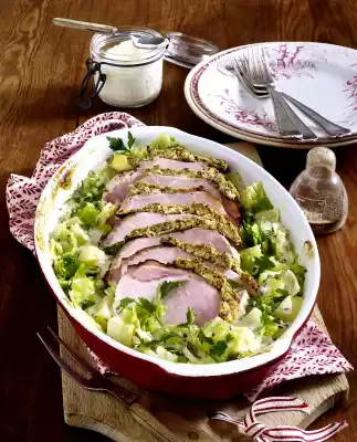 Kasselerkotelett With Mustard-honey-thyme Crust On Braised Savoy Cabbage