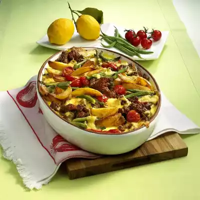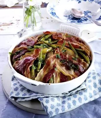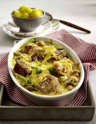 Hearty Vegetable Casserole With Smoked Pork And Potato Dumplings