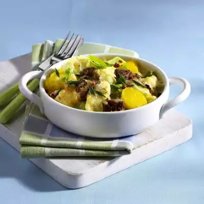 Cauliflower Casserole With Leek, Potatoes, Minced Beefsteak In Light Béchamel Sauce