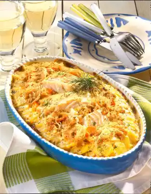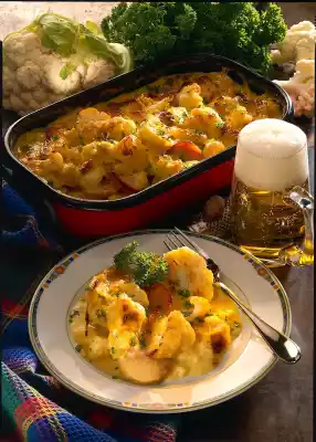 Potato And Cauliflower Gratin With Cheese Béchamel