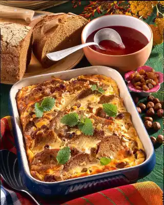 Bread Casserole With Cherry Sauce