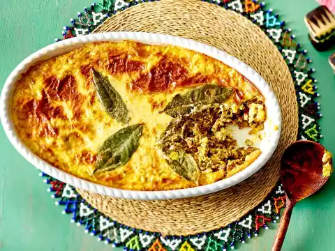 Minced Casserole With Egg Cream And Spiced Rice