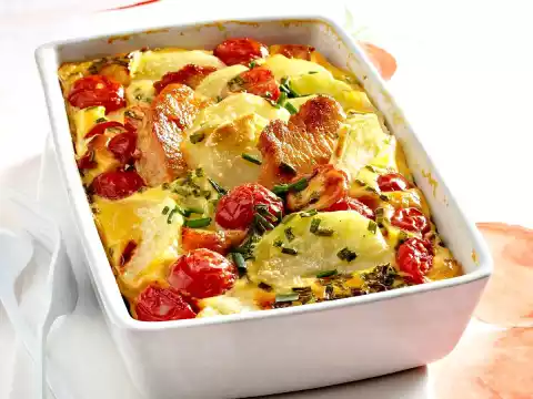 Potato And Courgette Casserole With Ground Pork And Cheese Béchamel