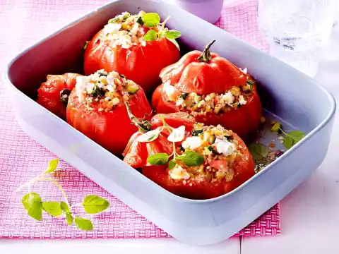 Stuffed Tomatoes With Couscous, Feta Cheese And Zucchini