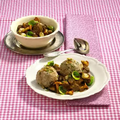 Black Bread Dumplings With Mushroom Goulash