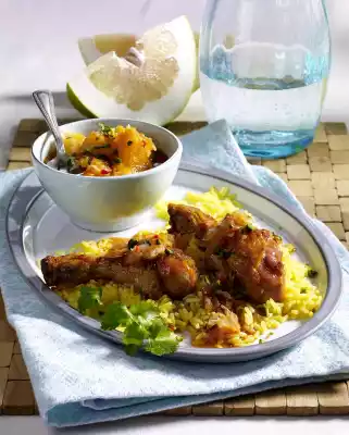 Glazed Chicken Drumsticks With Pomelo Chutney