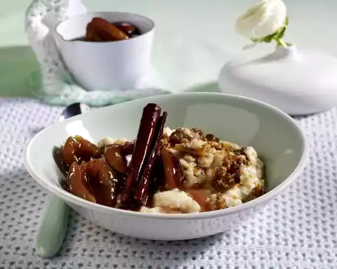 Semolina Pudding With Plum Compote And Walnut Brittle
