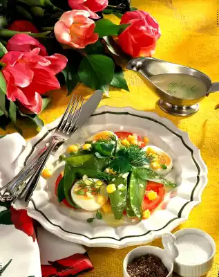 Turkey Rolls With Cheese Cream And Salad