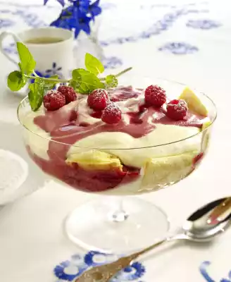 Almond Brine With Brittle And Raspberry Sauce