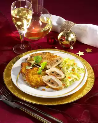 Chicken Fillets Stuffed With Truffle Liver Sausage And Creamed Savoy Cabbage