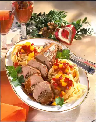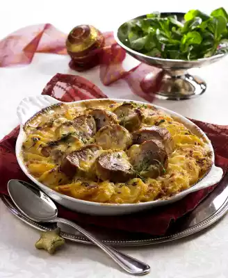Duck-apricot Roulade With Potato And Cheese Gratin