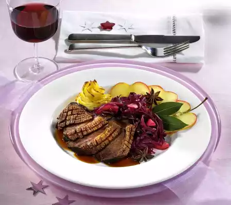 Goose Breast With Apple-red Cabbage And Duchess Potatoes