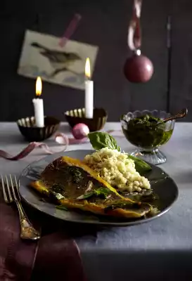 Loup De Mer (sea Bass) With Barley Risotto And Pesto
