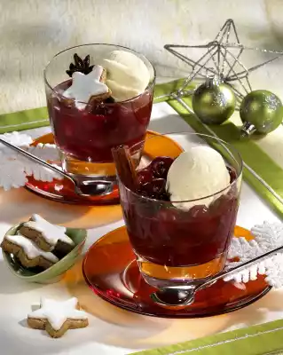 Hot Punch Cherries With Vanilla Ice Cream