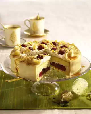 Trifle Of Chocolate Mousse, Stollen, Cream, Spekulatius Crumbs And Cherry Compote
