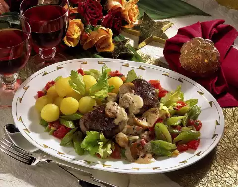 France: Chicken Breast With Cassis Sauce And Duchess Potatoes