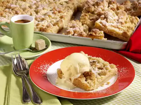 Apple Crumble Cake With Vanilla Ice Cream