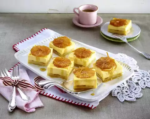 Cheesecake Cubes With Tipsy Oranges
