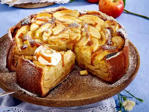 Apple Marzipan Cake With Caramel Sauce