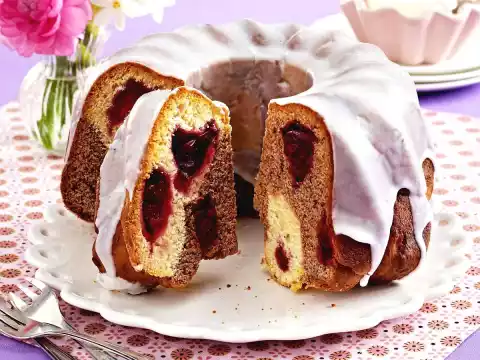 Black And White Marzipan Gugelhupf With Cherries