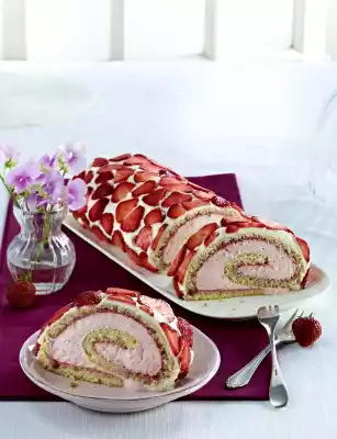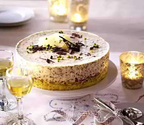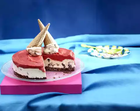 Stracciatella Mint Ice Cream Cake With Strawberry Sorbet