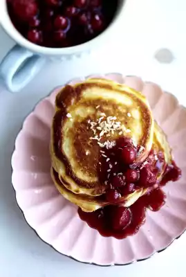 Buttermilk-coconut Pancakes With Berry-cherry Sauce