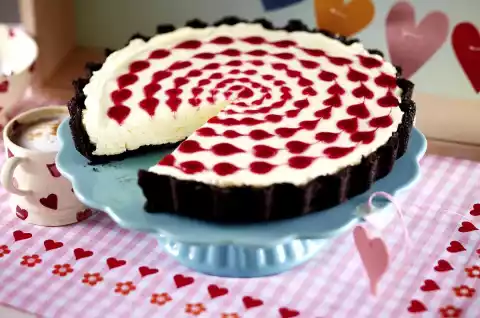 Raspberry Heart Tart With Mascarpone Cream And Chocolate Base