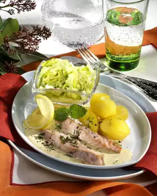 Pollock Fillet With Mustard Sauce And Potato-cucumber Salad