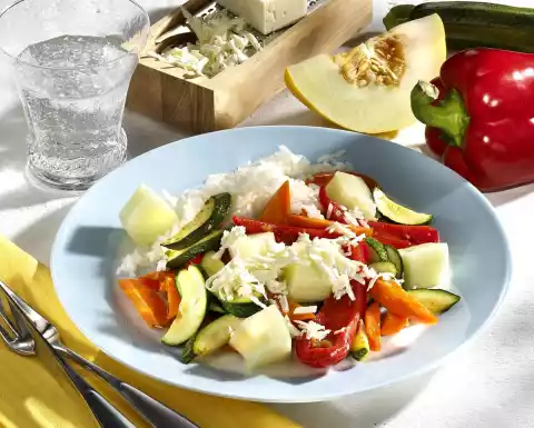 Melon And Vegetable Rice With Feta Cheese