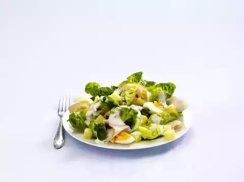 Colorful Salad With Turkey Strips And Yoghurt-lime Sauce