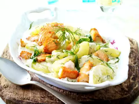 Potato And Salmon Gratin With Dill Cream