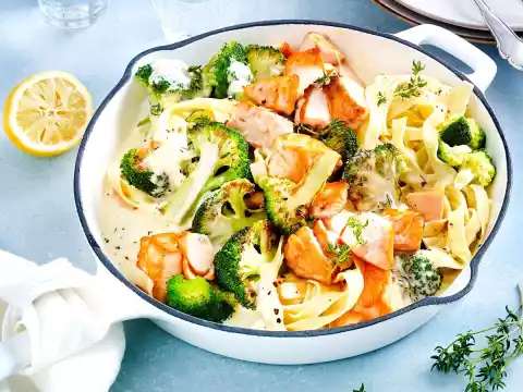 Salmon Noodle Pan With Broccoli